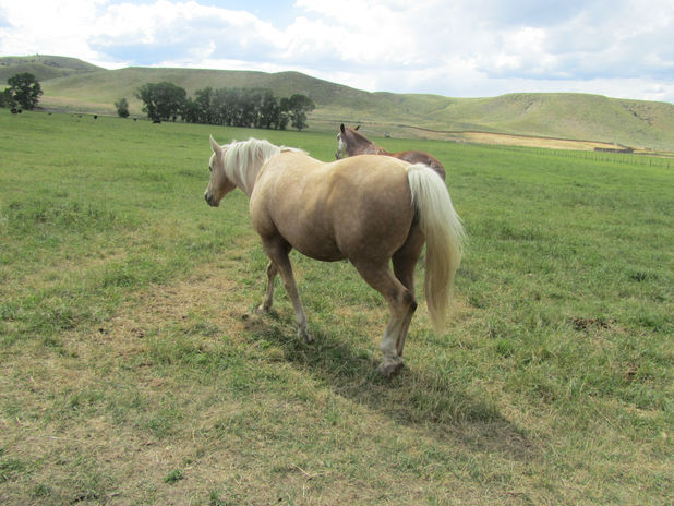 Goldie is one of our older mares that consistently puts out great babies. We bought Tay, one of her daughters, as a breeding mare too because we liked her so much. Goldie is a nice stout mare, that produces excellent gait and a nice thick stature. She stands 15 hh but is one of our thickest mares.